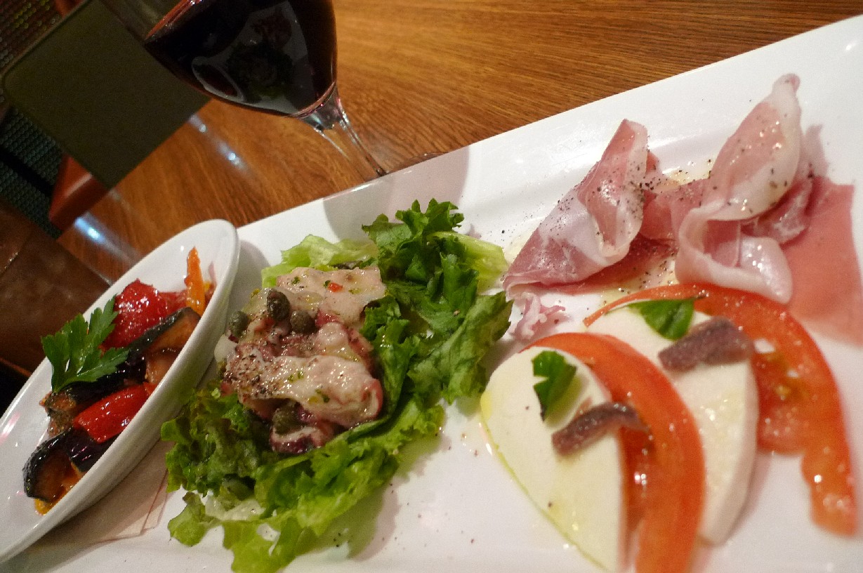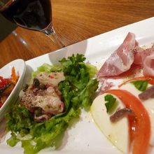 カプレーゼ、たこのマリネ、カポナータ、プロシュートと