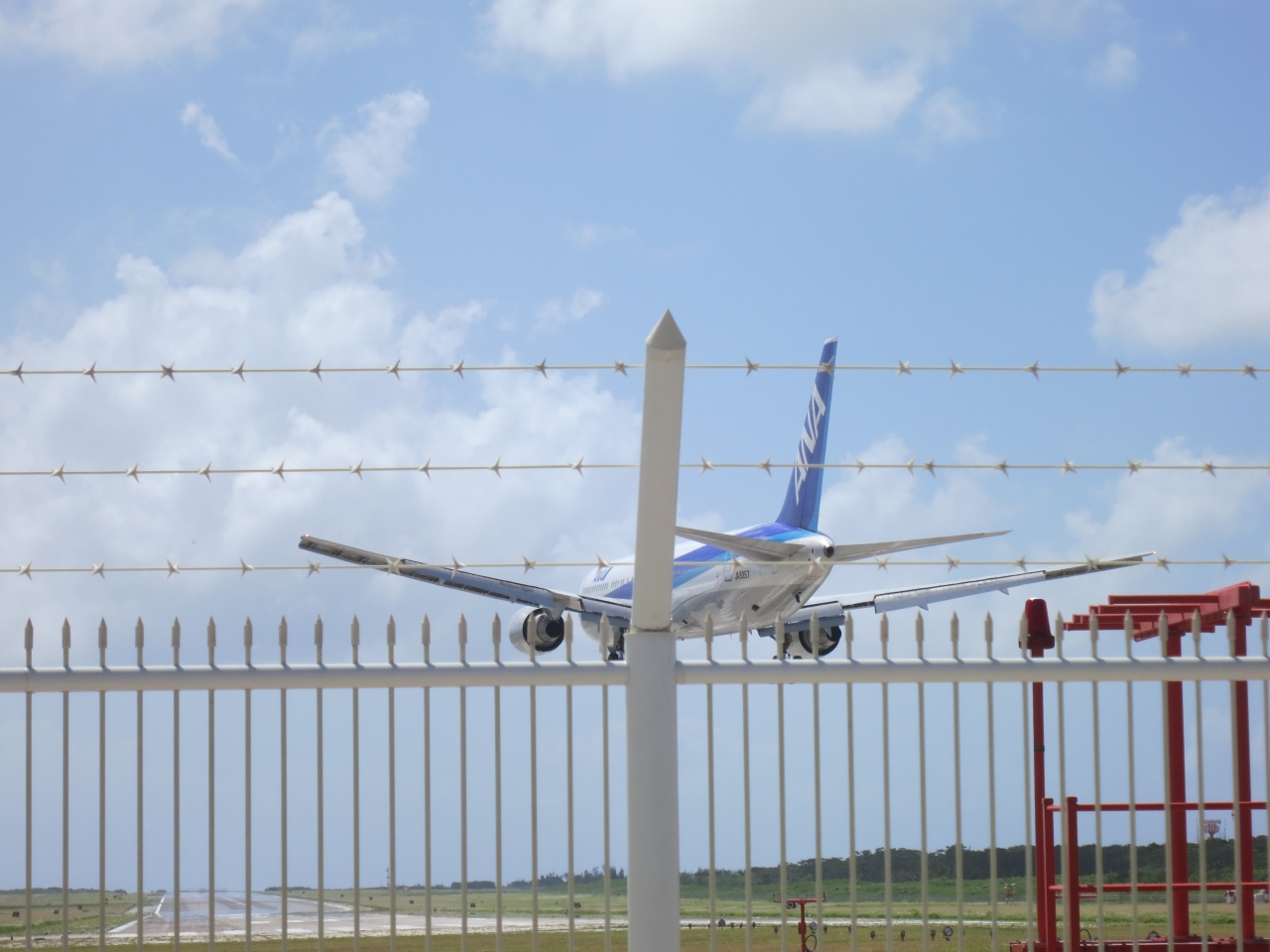 飛行機の着陸時には飛行機と綺麗な海がコラボレーションした