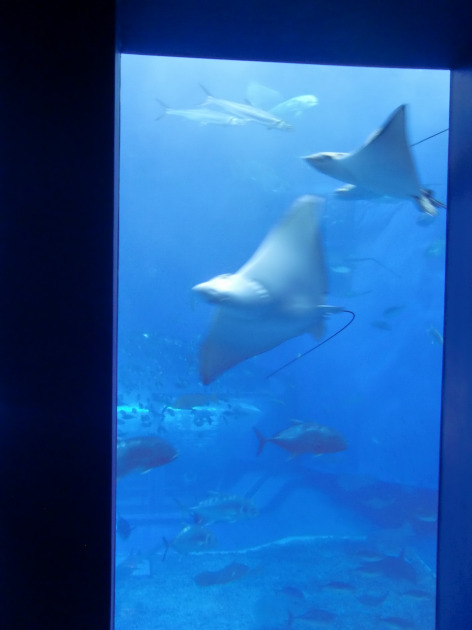 午後4時からだと割引料金で入場できます。コンビニ等で買った前売チケットも差額を現金で払い戻してくれます。先に「オキちゃん劇場」を見てから、水族館に入ればよいと思います。ジンベイザメの給餌も午後5時から。でかい体で大量のオキアミを吸い込む姿は、ほほえましい限りでした!大水槽は、観ていてあきません!