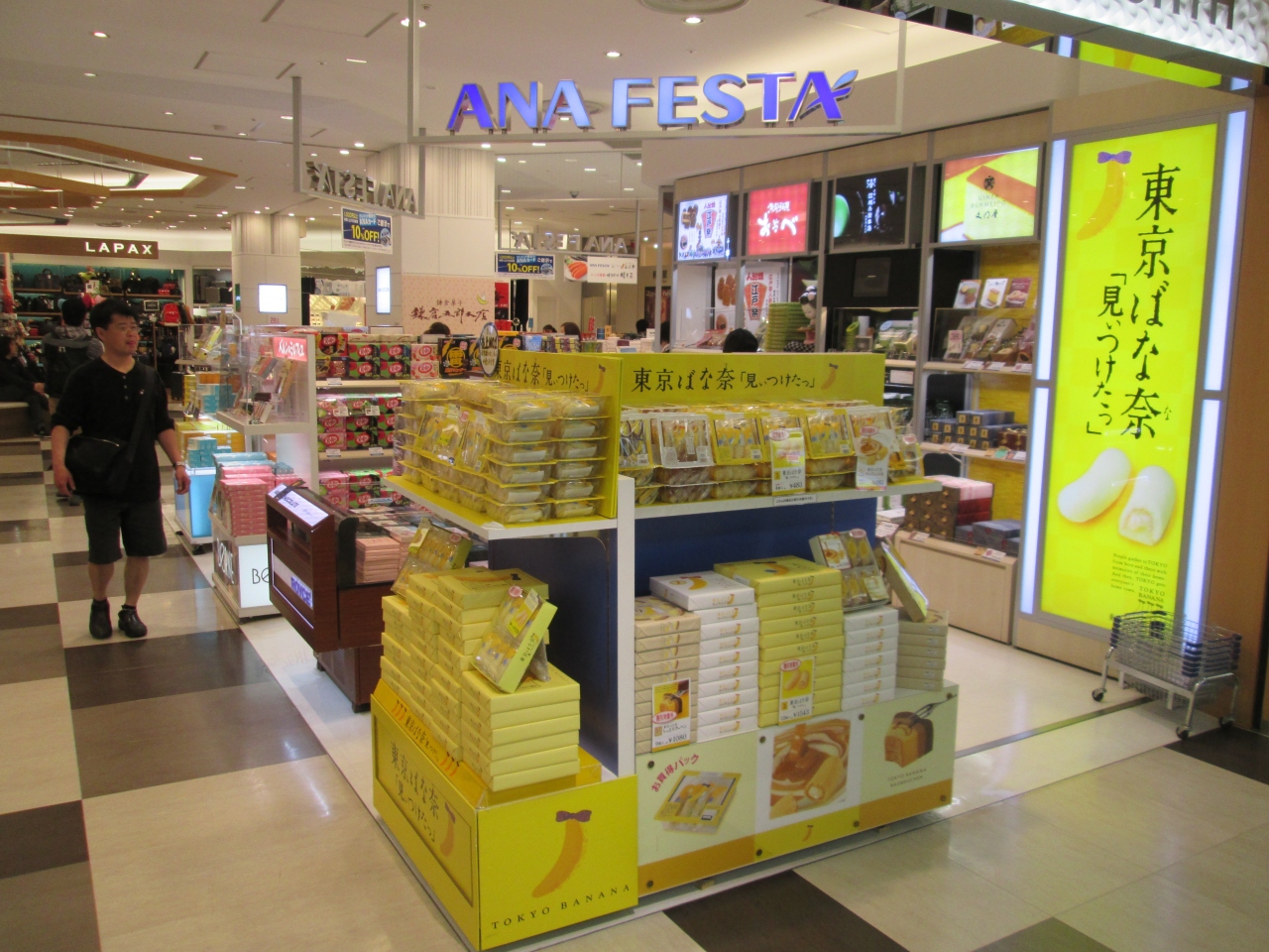 成田空港第二ターミナルのANAフェスタでは会計時にANAカードを提示すると10%割引されます。各種東京土産や空港限定品を扱っており種類豊富です。残念ながら、東京バナナは割引対象外です。支払いにEDYが使えるのが良いです。