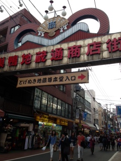 おばあちゃんの原宿といわれている商店街です。商店街なので洋服屋さんや和菓子屋さんがいっぱいあります。やはりお年寄り向けの商品がいっぱいで、あの有名な赤いパンツもちゃんと売っていました。巣鴨は塩大福も有名みたいです。