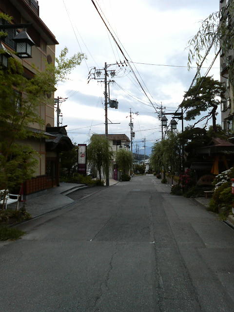 何軒か温泉ホテルが並ぶ静かな道で、小ぢんまりとしてますが神社や飲食店がちらほらあったりと、元々鄙びた感じの湯田中温泉の中で、さらに静かな雰囲気を味わえると思います。