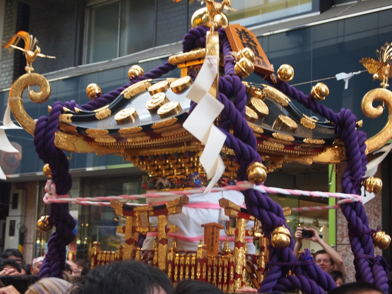 浅草で毎年5月に行われる有名なお祭りです。期間は3日間。2014年度は18日までの3日間でした。私は15時くらいから行ったのですが、たくさんの人でした。雷門前に行くと、ちょうどお神輿が来たところだったのですごい混雑で、歩くのも大変なくらいでした。でも、この賑わい大好きです。また来年も行きます!