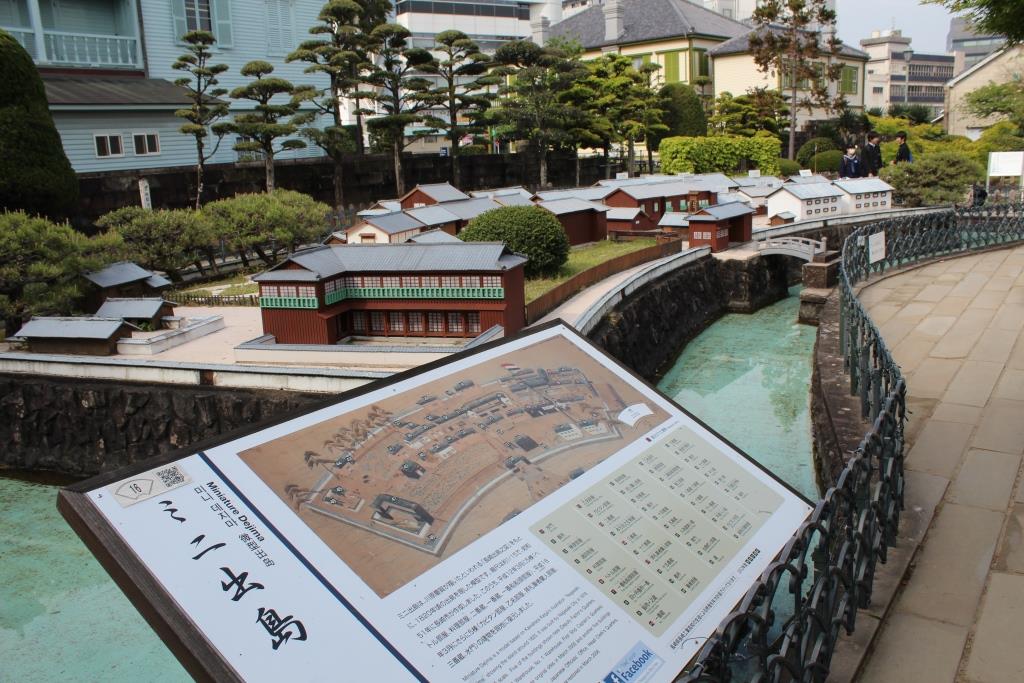 鎖国中の日本に、唯一外国と交流があった出島に並んでいた商館などが復元されていてます。
