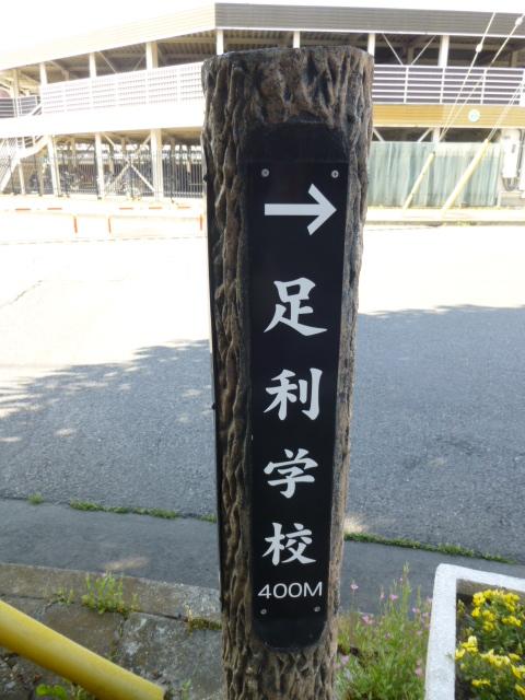 足利学校,あまり行き先看板がありません,といいますか,私が見落としたのか。足利駅には,このように看板が控えめに出ていました。もっともっと,大きく派手に出してもらいたいです。緑が多く,実に落ち着くいいところです。