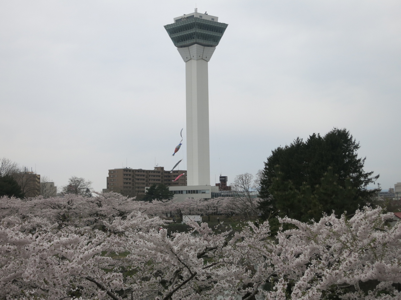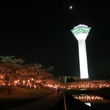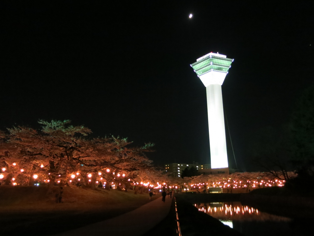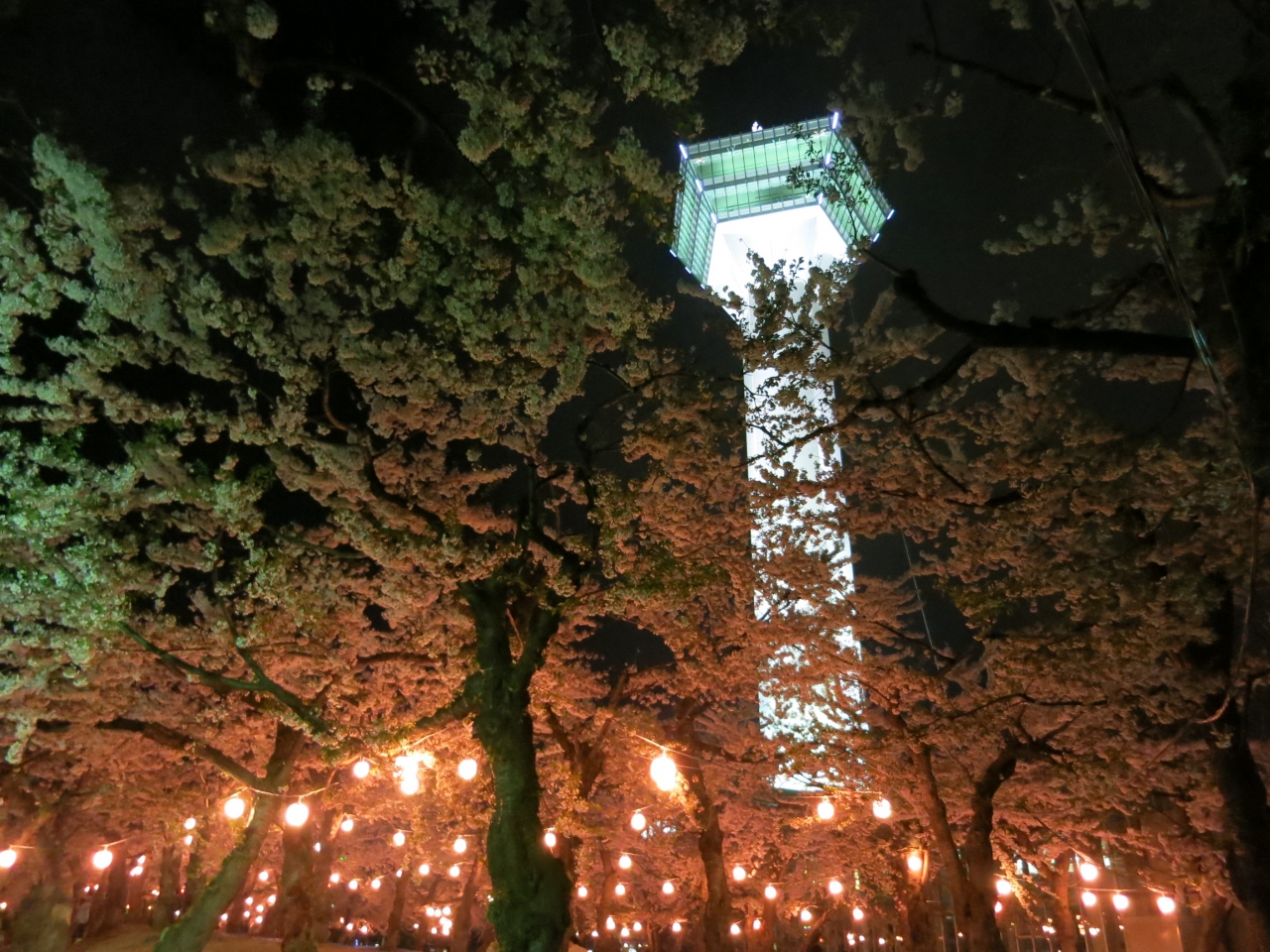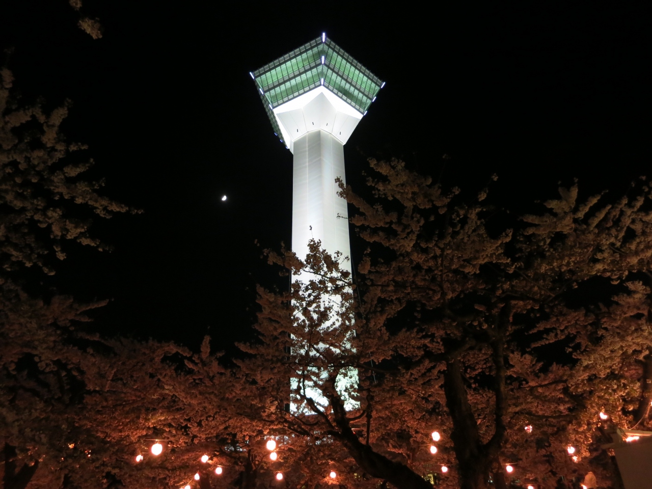 五稜郭タワーの上からも見てみたかったのですが、残念ながらタワーは19時までと比較的早い時間で閉まってしまいます。このころの日没時間は18時30分頃で、ちょうど暗くなるころですが、肝心のライトアップは19時からのため、どちらにしてもライトアップの桜を見下ろすことはできません。