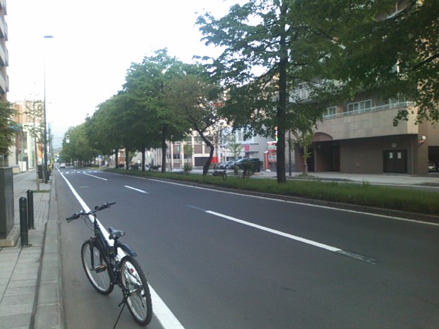 裏参道と言えば、大通公園から西側にさらに進むと、円山公園に向かう道沿いに続く並木が印象的な所ですが、お昼ですと交通量が多くて、ちょっと観光を楽しむ、という風情にはなれない所です。でも今回朝4時半頃にサイクリングしてみて、その清々しい雰囲気に、別の道に迷い込んだように錯覚してしまう程でした。5~7月頃の日が長い時期は、特に早起きして、散歩やサイクリングなどを楽しんで頂きたい道です。