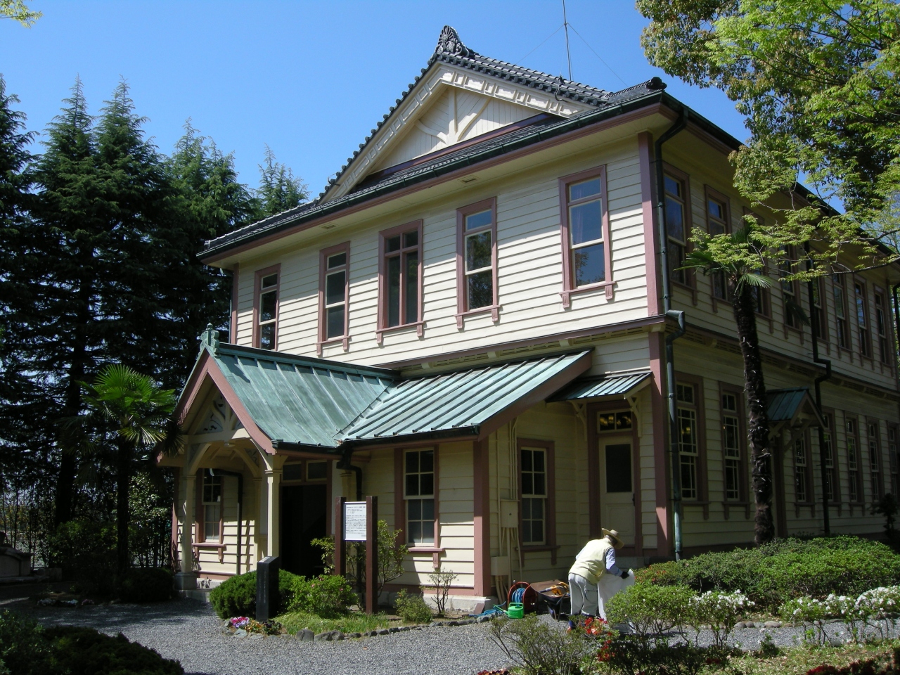 つつじヶ丘公園につつじ見学に来たついでに訪れました。敷地内には旧上毛モスリン事務所と田山花袋旧居があります。旧上毛モスリン事務所は小さな洋館で上毛モスリン株式会社の事務所として明治41年(1908)から43年にかけて館林城二の丸跡に建てられたものです。一方の田山花袋の住居は、文豪、田山花袋が7歳から14歳までの約8年間過ごした家です。木造茅葺平家建て。江戸時代後期の武家屋敷のひとつでもあります。