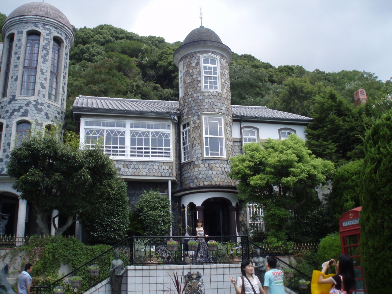 風見鶏の館より坂の上に登ったところにある、外壁がさかなのウロコのようなデザインの石を使った建物で特徴的です。内部はアンティーク物の家具や食器等の豪華な展示物が沢山ありました。3階のバルコニーからは神戸の街並みが一望できて素晴らしかったです。