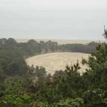 晴れた日の昼下がりには、砂絵に影ができて、見ごたえが増すそうです。寛永通宝の先に海が見えるのも素敵です。