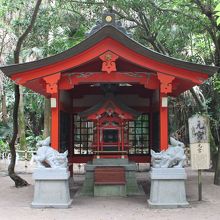 ジャングルのような森に朱の社殿が映えて、美しい景観です。