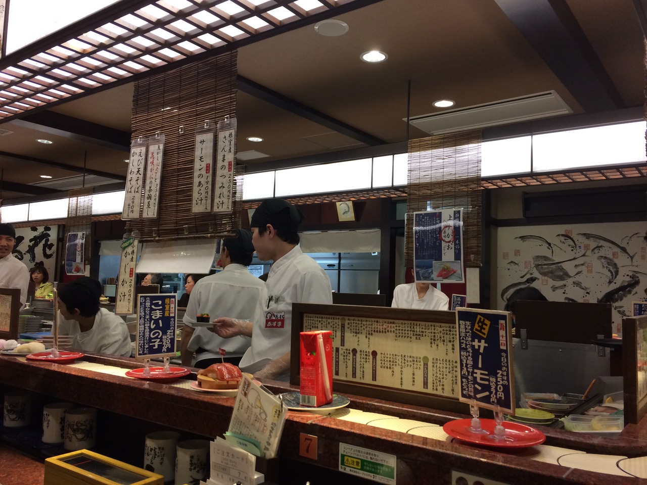 あまり回転寿司に行かないので、回転寿司というだけで新鮮でしたが、おまんじゅうとかも回ってて、面白かったです。