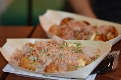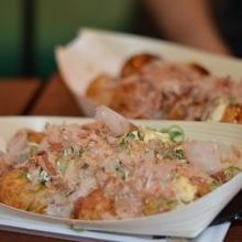 普通のたこ焼きとポン酢のかかったたこ焼き2種類たべました。