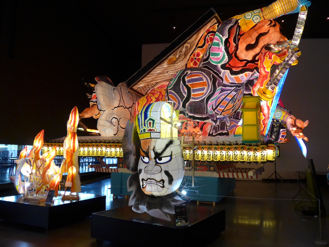 青森駅に着いたのが遅かったのですが閉館の19時まで時間が一時間あったので入館しました。入ってからすぐにねぶたがありねぶた祭りの様子やねぶたの歴史、作成段階、作者の紹介と作品紹介そして何よりも凄いのは前年度の代表作を五基、常設展示されているのを見る事が出来る事です。電照されているねぶたは迫力ある図柄がまるで動いてくるような感じになるド迫力のねぶたは目に焼き付く見学と似りました。