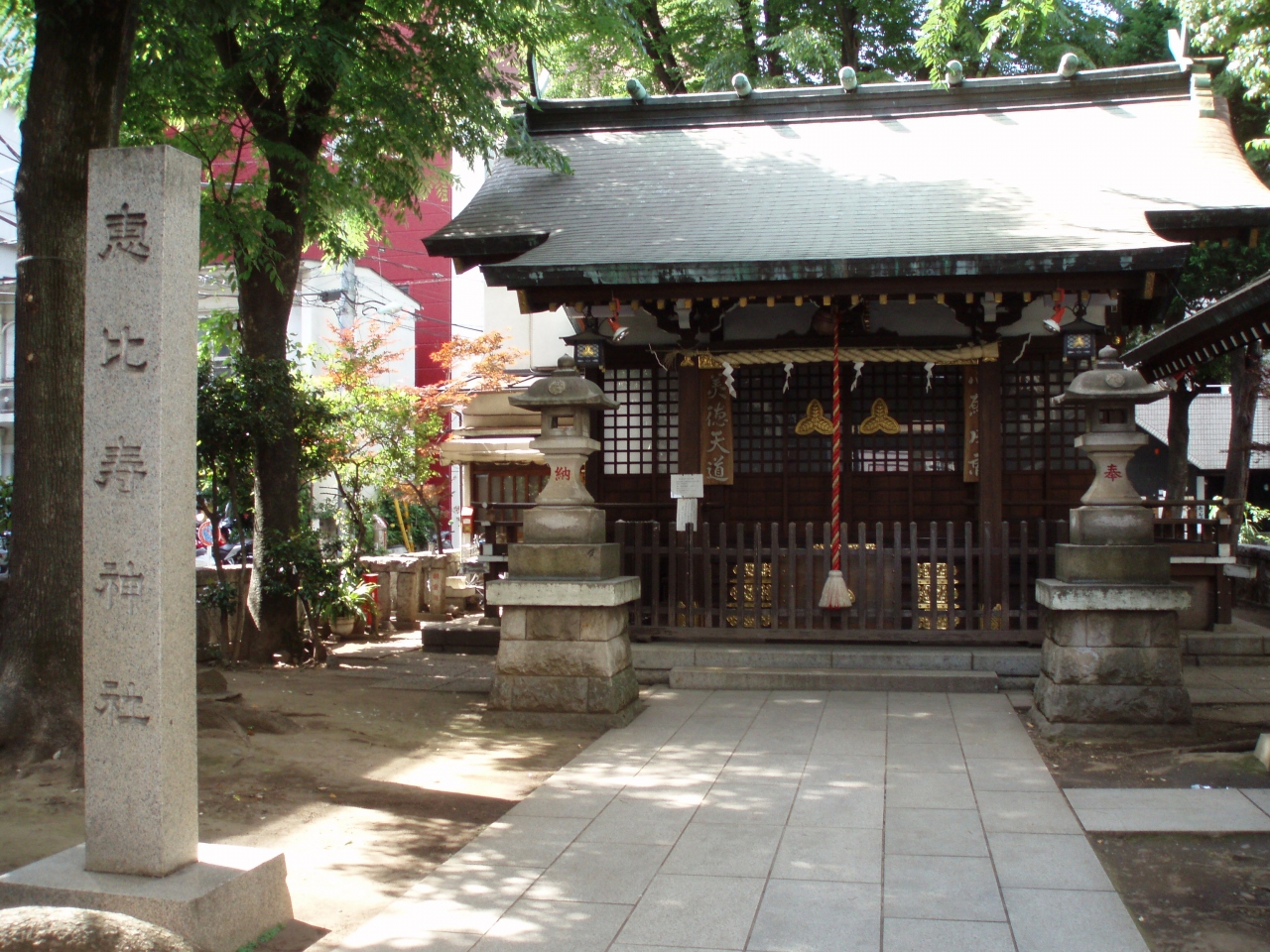 JR恵比寿駅西口改札を出て約100メートルぐらい歩いて居酒屋などの多い雑居ビルのど真ん中に恵比寿神社は鎮座してます。小さな恵比寿神社を中心に道路が境内を避けるようにぐるりと四方を取り囲んでホット一息つける場所です。又、恵比寿ガーデンプレイス内にも小さな恵比寿神社がありました。ところで日本の三大恵比寿神社は京都恵比寿神社・大阪今宮恵比寿神社・西宮恵比寿神社らしい~す。