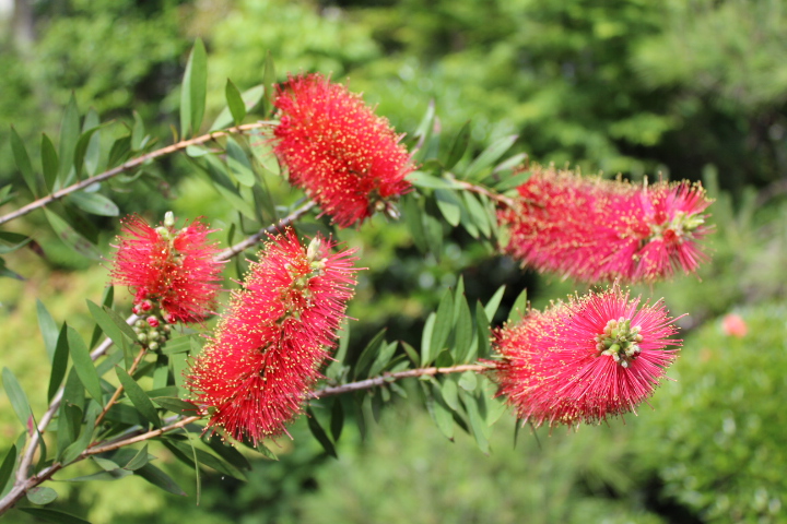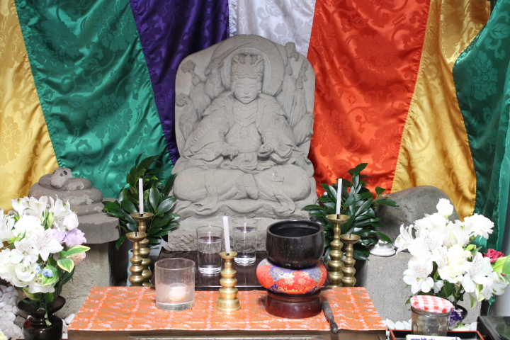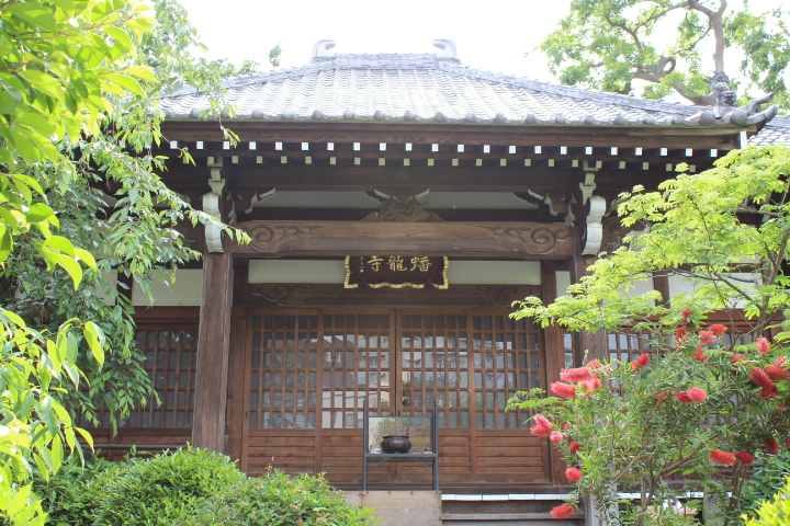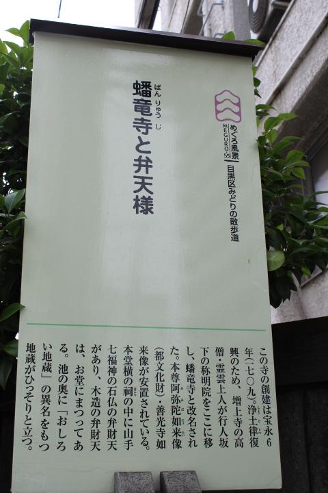 江戸最初山手七福神の弁財天が本堂横の祠の中に安置されています。木造の弁財天はお堂に祀られています。池の奥に「おしろい地蔵」の異名をもつ地蔵がひっそりと立っています。境内にはオーストラリア原産のブラシノキの赤い花が咲いていました。