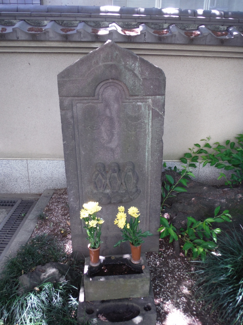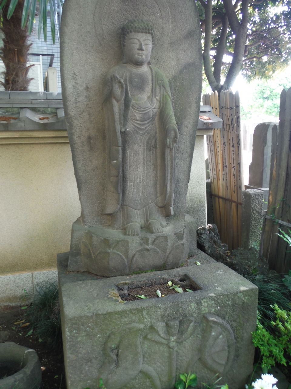 早稲田の来迎寺にある庚申塔と阿弥陀如来立像