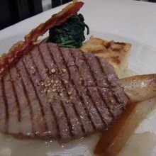 レアでお願いしましたが焼き加減もほぼ満足、お肉が柔らかくてんもぉ最高です。付け合せの野菜などの種類と量がまた豊富で、食べ応え十分。