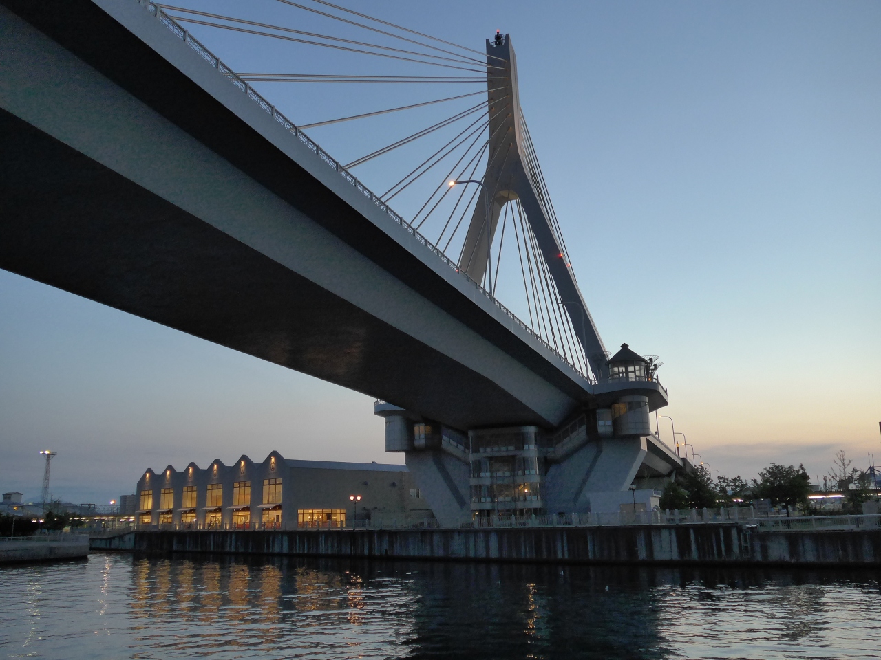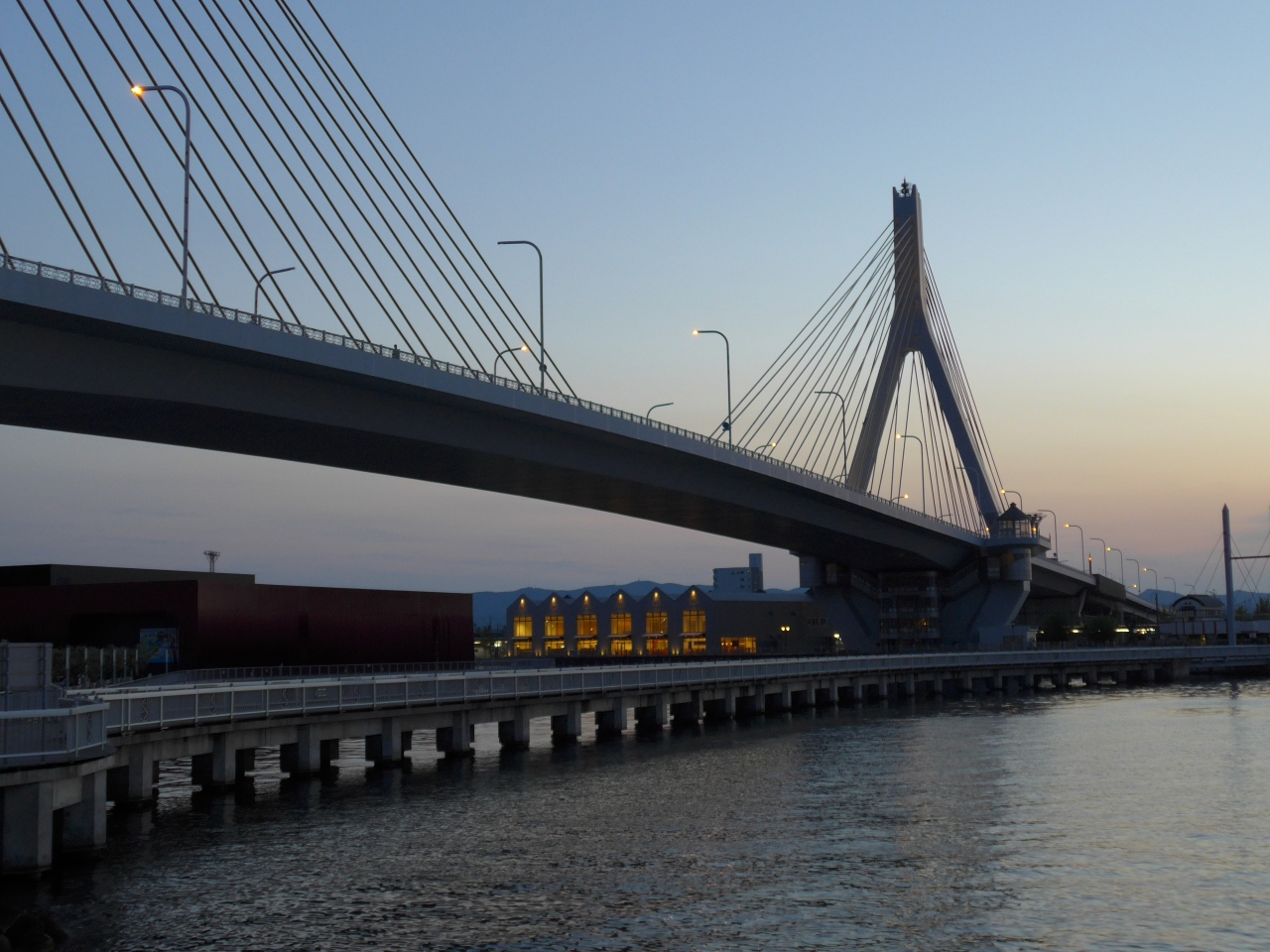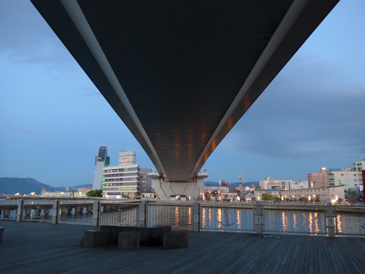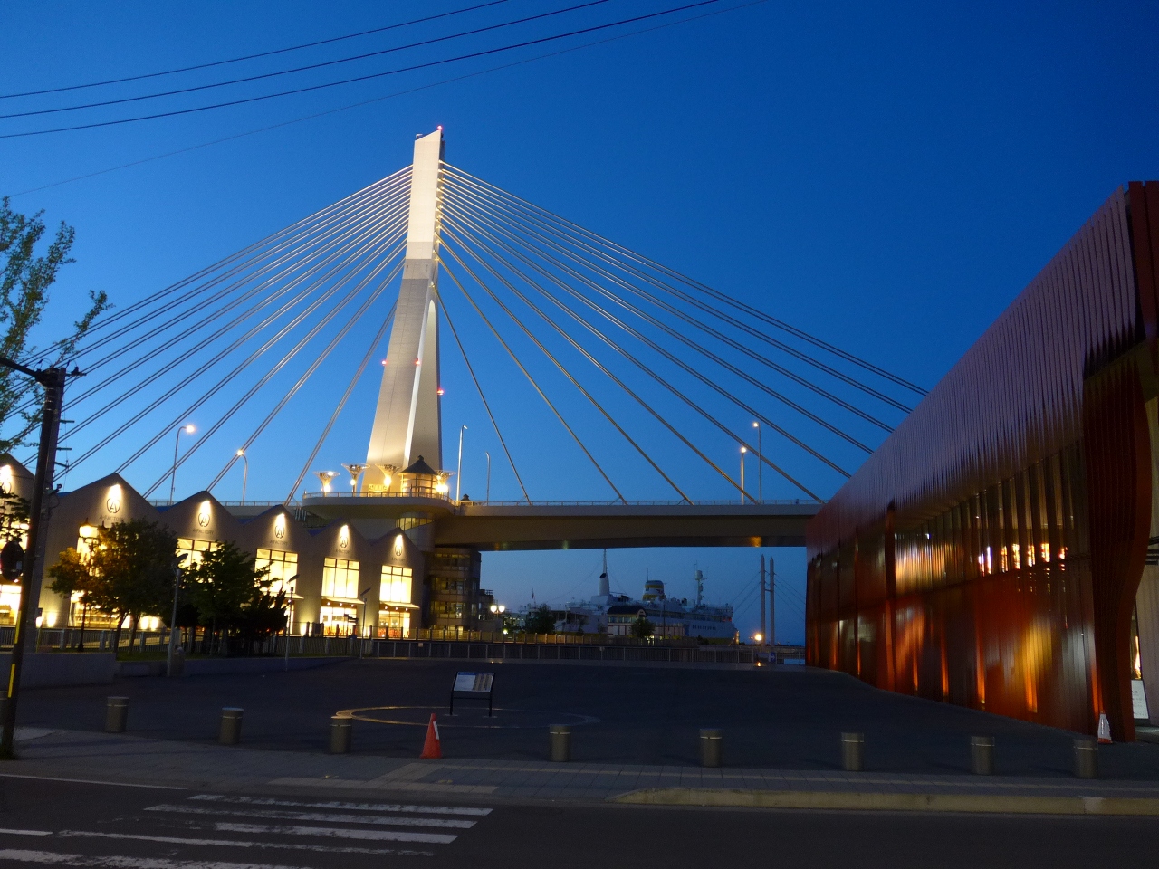 青森駅を下車し、ねぶたミュージアムの「ワ・ラッセ」の予後を通り左手にA・FACTORYを目にして進むと大きなそびえる様な橋が青森ベイブリッジです。