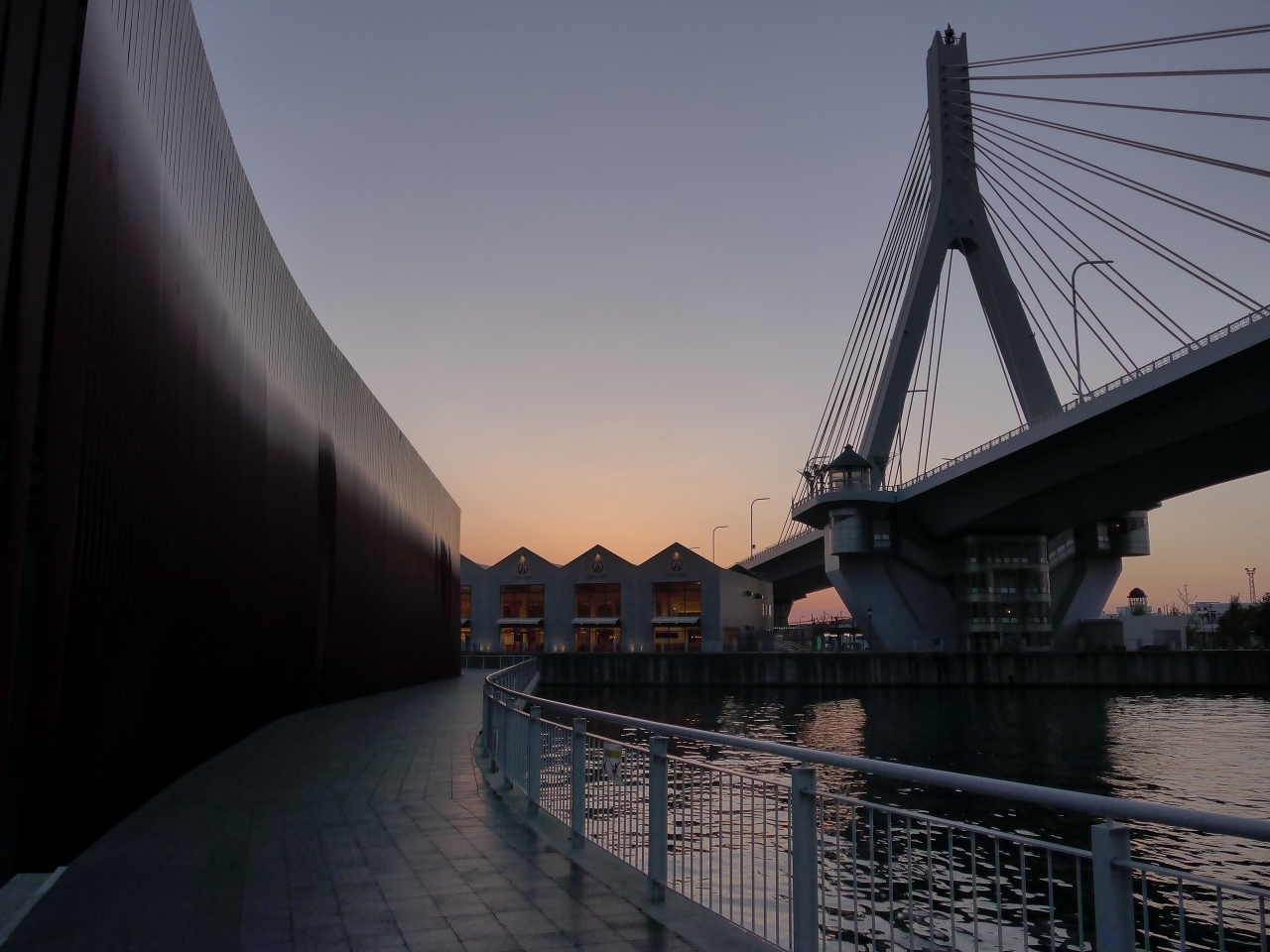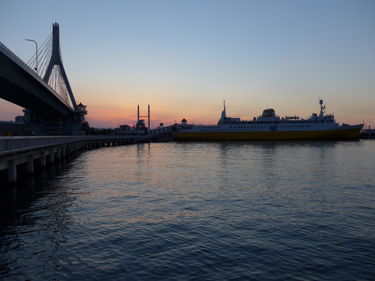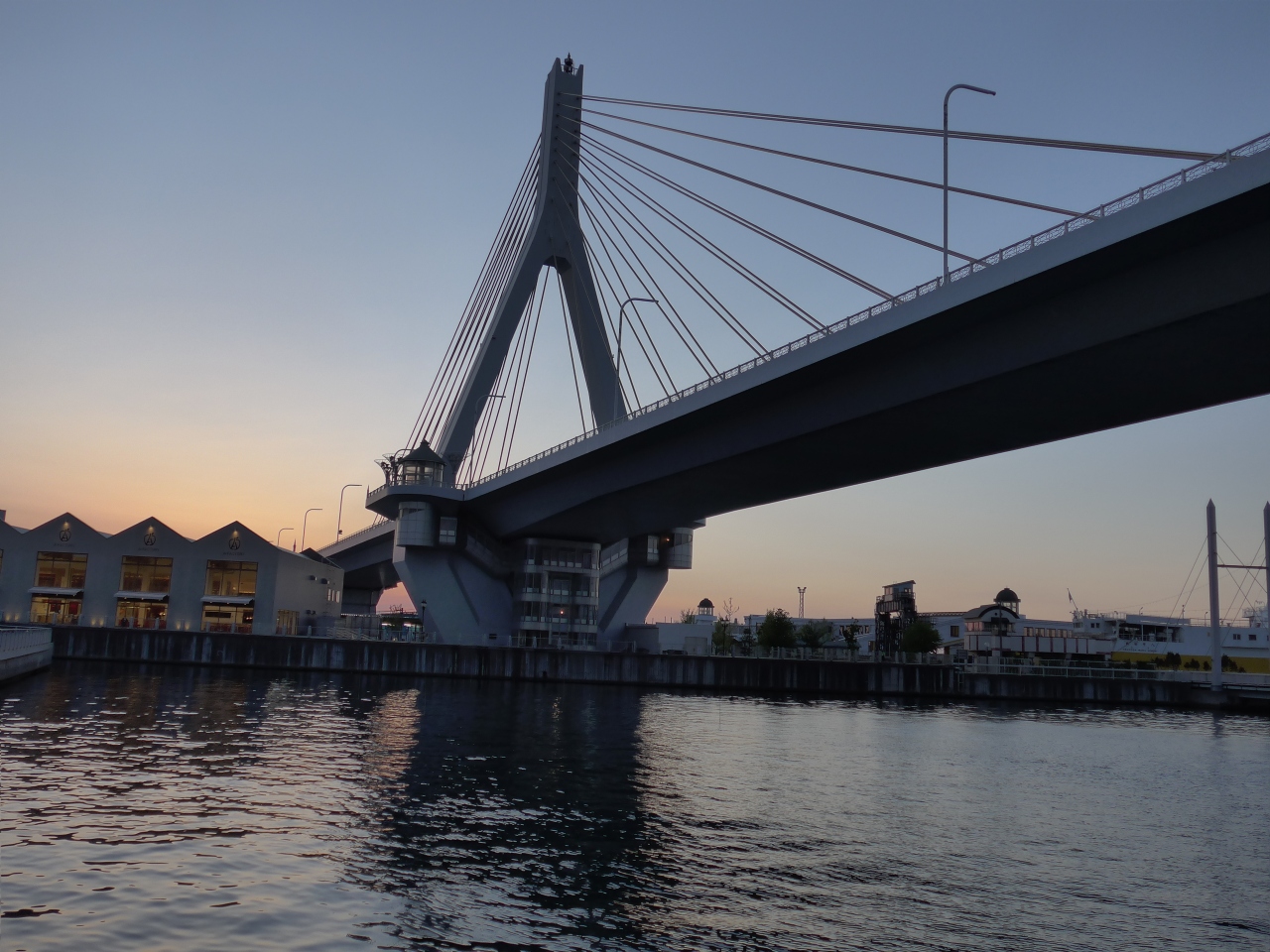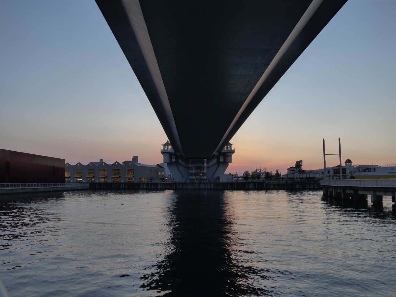 青森駅を下車し、ねぶたミュージアムの「ワ・ラッセ」の予後を通り左手にA・FACTORYを目にして進むと大きなそびえる様な橋が青森ベイブリッジです。