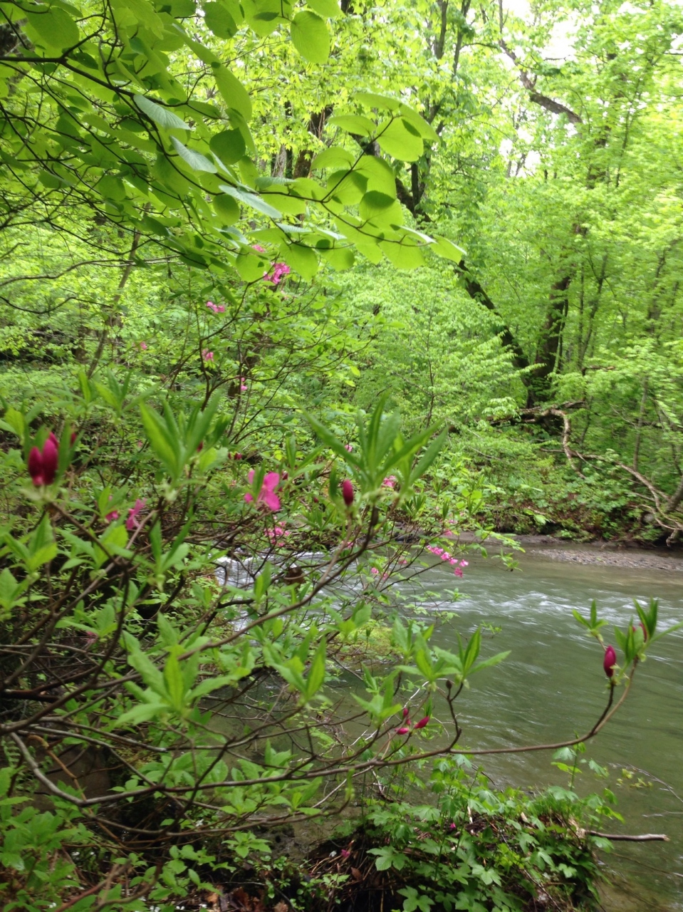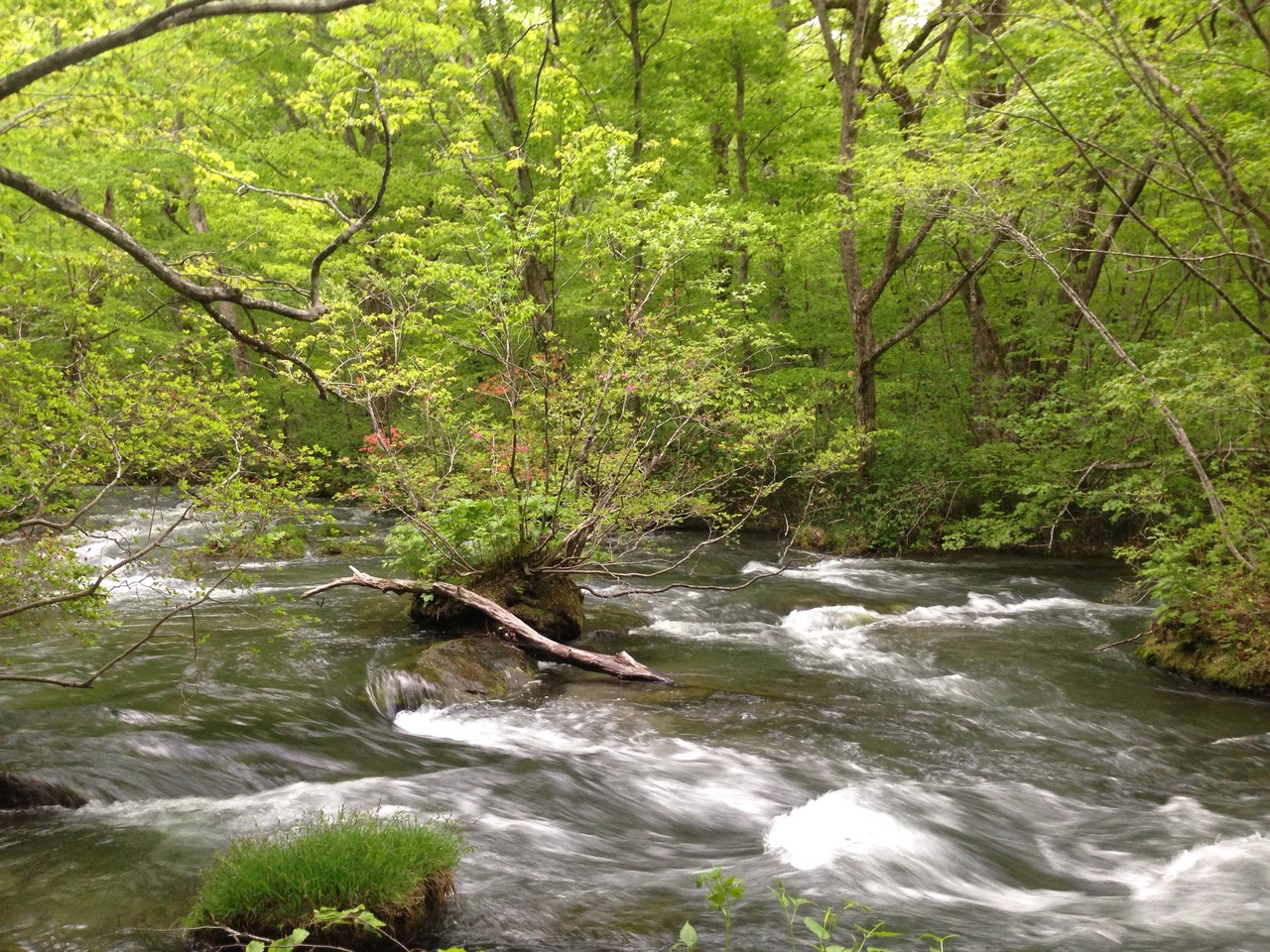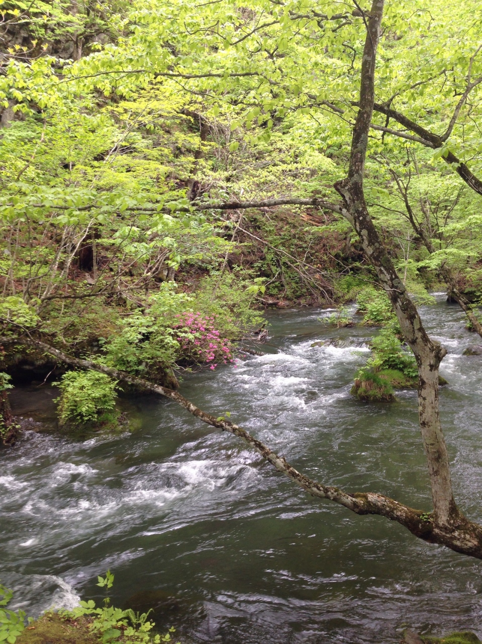ちょうどムラサキヤシオツツジが咲き 水量も9月よりあり 美しい新緑で これぞ奥入瀬渓流!という景色に出会え感動。
