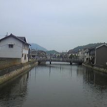JR西舞鶴駅から西へ少し歩くと高野川があります。駅付近から河口までには数本の橋が架かっています。それらの橋の上から見える風景(川の両岸に沿って立ち並ぶ倉庫風の家屋郡)は、風情がありました。昔は、全国から船で運ばれてきた荷物が、高野川沿いの倉庫群に運び込まれていたとの事です。