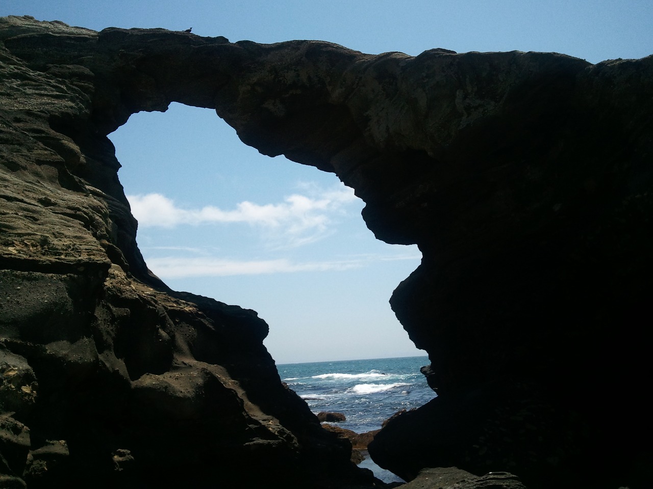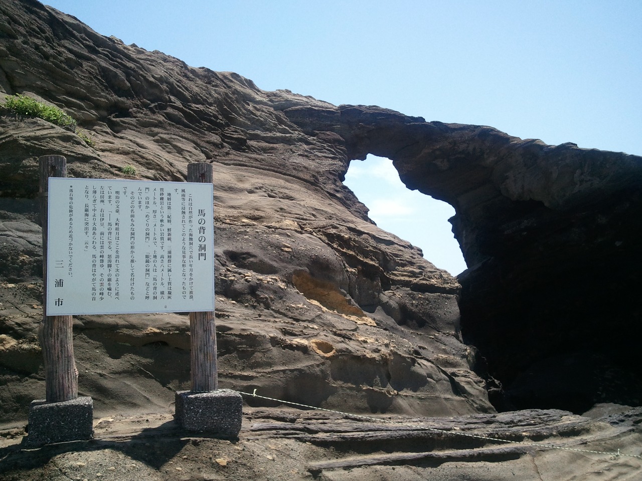 城ヶ島でも太平洋側にある馬の背洞門。ハイキングコースの途中に入口があります。かなり急な階段を降りて行くので、たどり着くまで大変かも。高さ8?、横6?の自然がつくり出した芸術品。長い年月をかけてつくられた海食洞穴です。