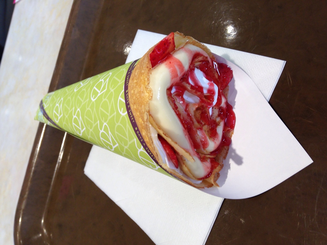 三田アウトレットモールのフードコート内の店舗です。ランチを食べ終わった後でもう少し何か食べたいなと思ったのでデザートにしました。ソフトクリームやジェラートなどもありましたがクレープにしました。