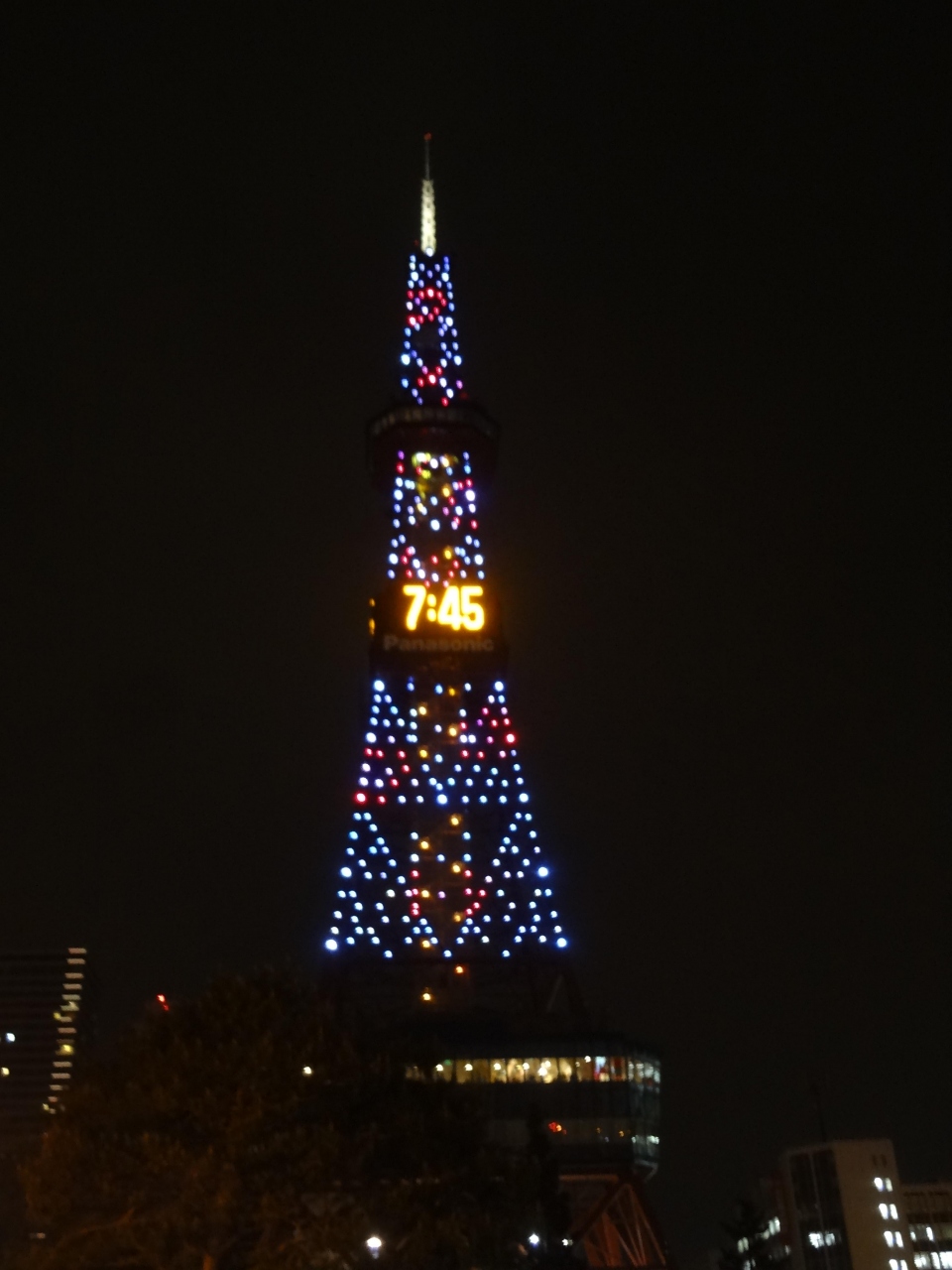 札幌のシンボルといえばこのテレビ塔。ということで札幌に行くと必ず一度は訪れます。この日は夜すすきのまで行く途中に見に行きました。シャンパンタワーのようにキラキラしたイルミネーションをやっていてなかなかきれいでした。思わずパリで見たエッフェル塔のシャンパンタワーを思い出しました。絶対的な規模は違うもののけっこう良かったです。