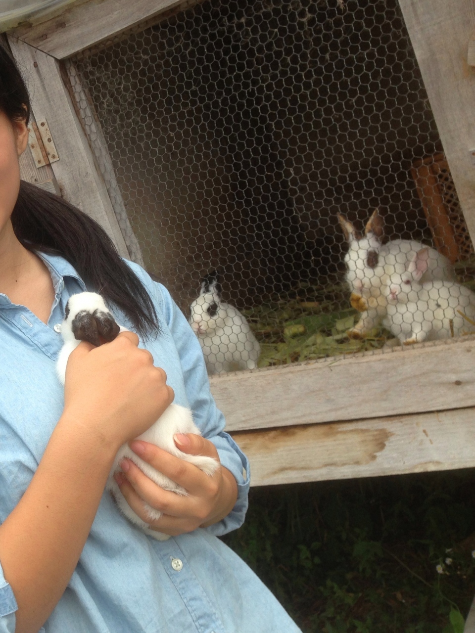 お芋を掘った後はウサギさんと触れ合ったり、茹でたてのトウキビを戴いたり・・・♪