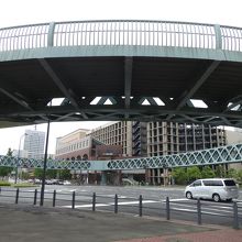 横浜ワールドポーターズ2Fからつながる円形の歩道橋です