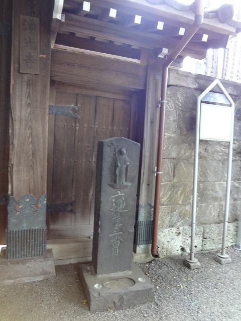 富士見坂を上ると、浄光寺があります。3代将軍徳川家光が、鷹狩りの際、昼食を食べる寺に指定した寺で、眺望の良さで有名なお寺だったそうです。境内には、江戸六地蔵の一つ、鋳造の地蔵菩薩像があります。現存するのは、ここと千駄木の専念寺だけだそうです。