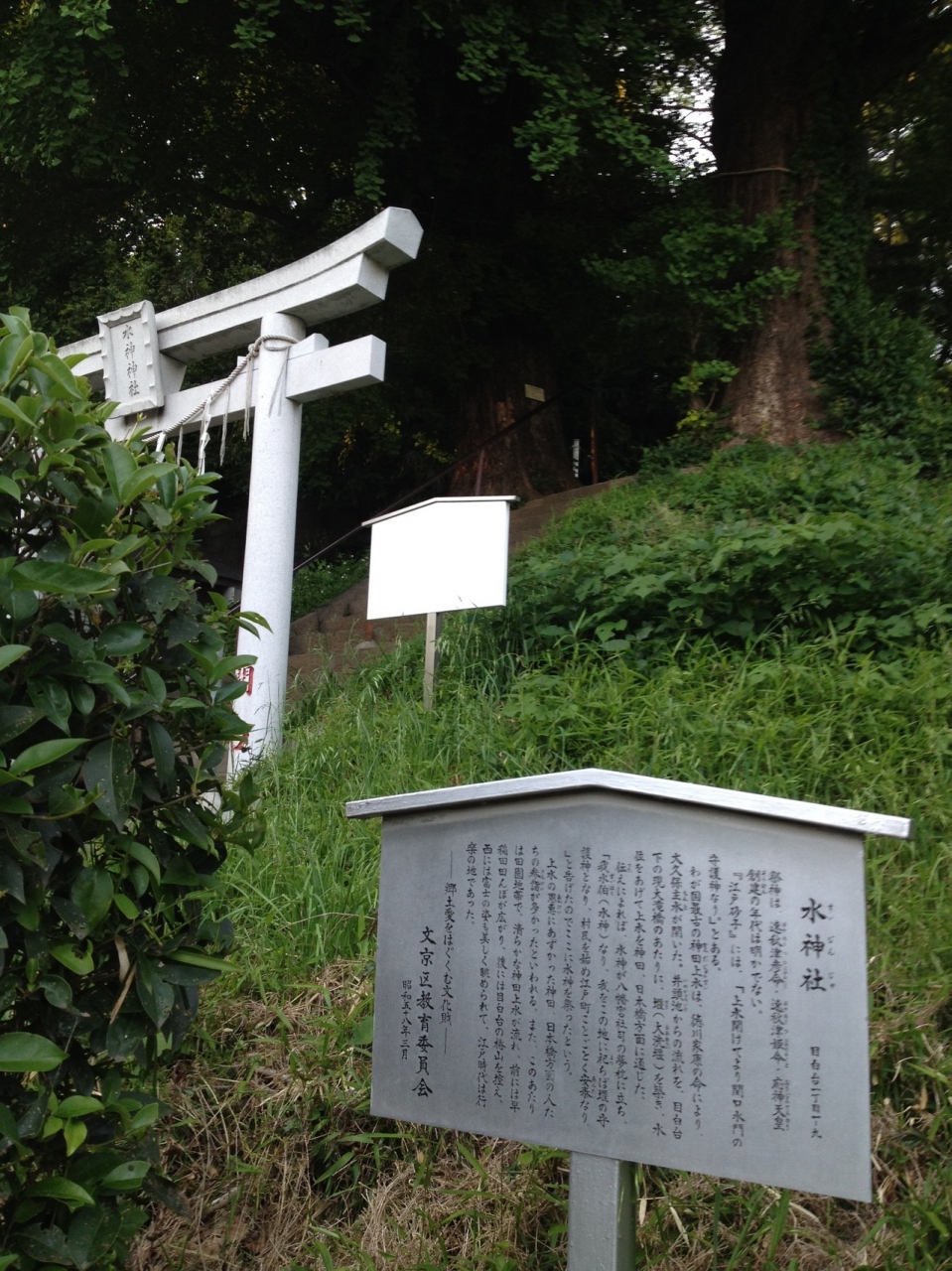 早稲田の神田川沿いにある神社で、創建年代は不明ですが、いい伝えによれば水神が八幡宮社司の夢枕に立って、この地に神社を造るお告げをしたようです。珍しい水神を祀った神社です。江戸時代には神社前に水を流したり、風光明媚だったようです。