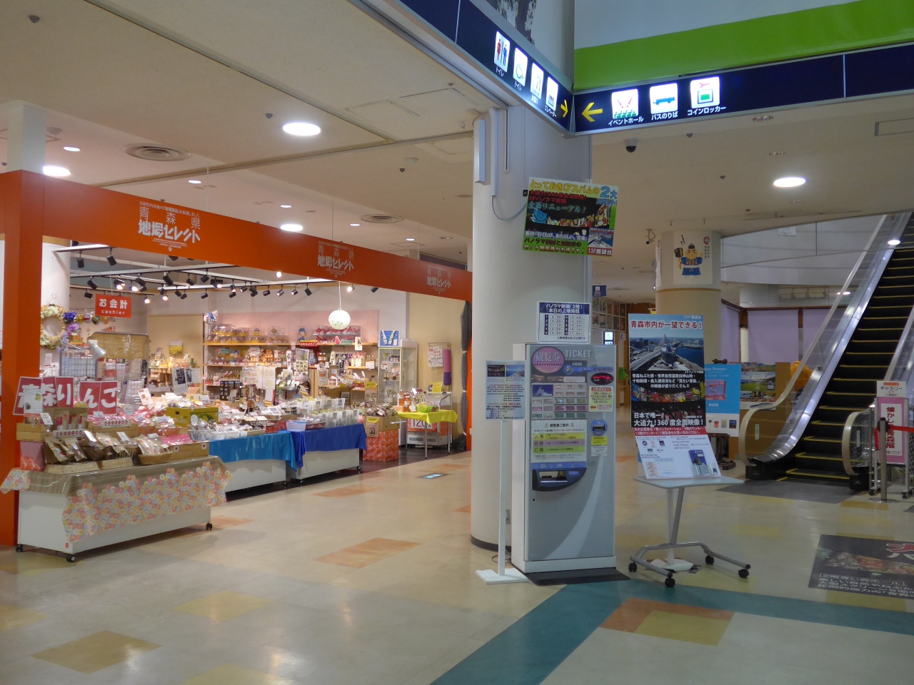 海のすぐそばにありこの時期には8月のねぶた祭りの準備がすでに行われているねぶた小屋が周辺にあります。館内には青森県内で最大級の品ぞろえの物産館、美味しい青森の料理が食べられるグルメコーナーもあり観光客でにぎわっています。