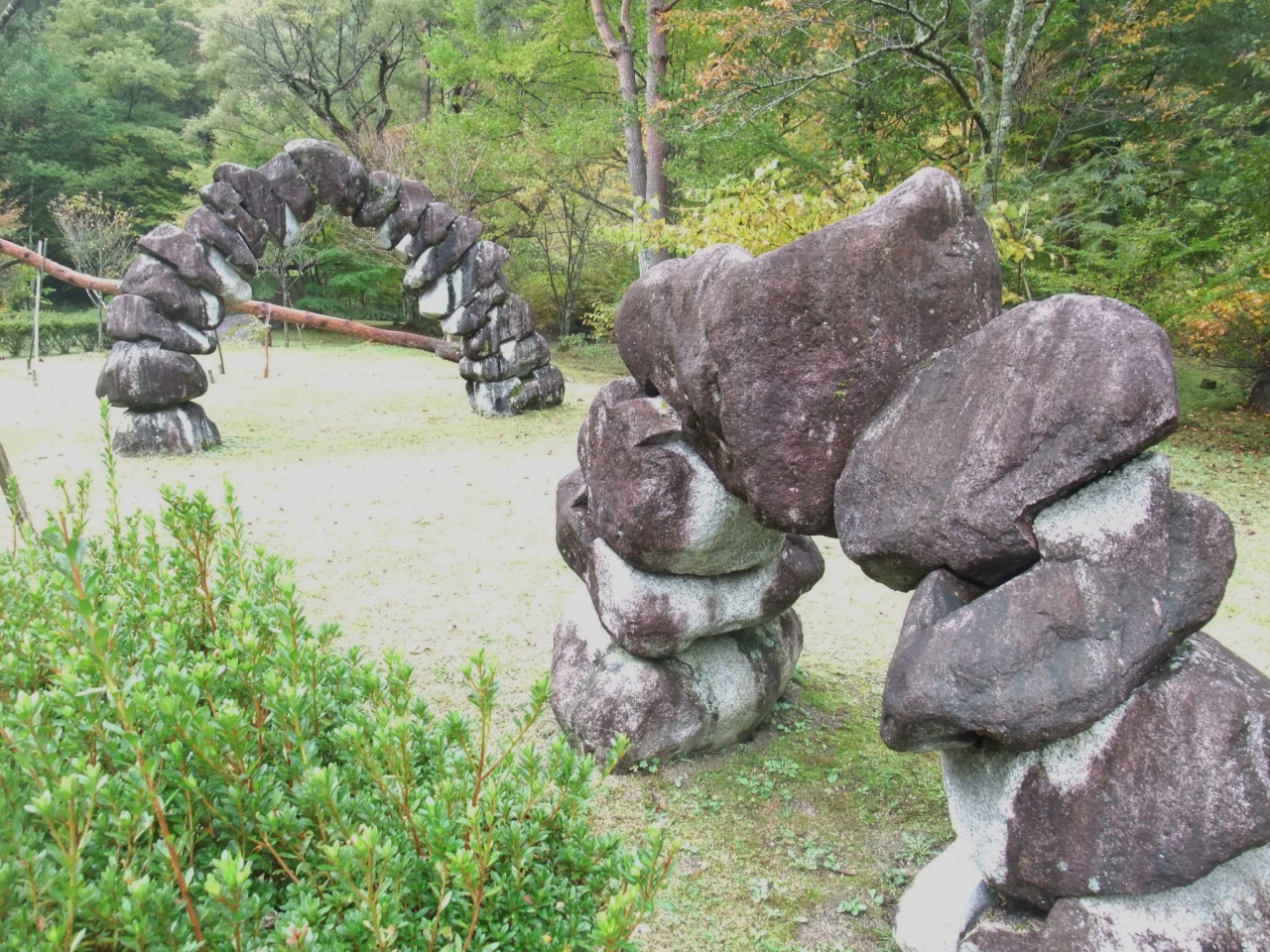木曽川の激流が花崗岩の岩盤を長い間に浸食してできた国の史跡名勝天然記念物「寝覚の床」の見える一角にあるのが、目覚床の美術公園で、ここには空充秋氏の作品などの彫刻が置かれています。