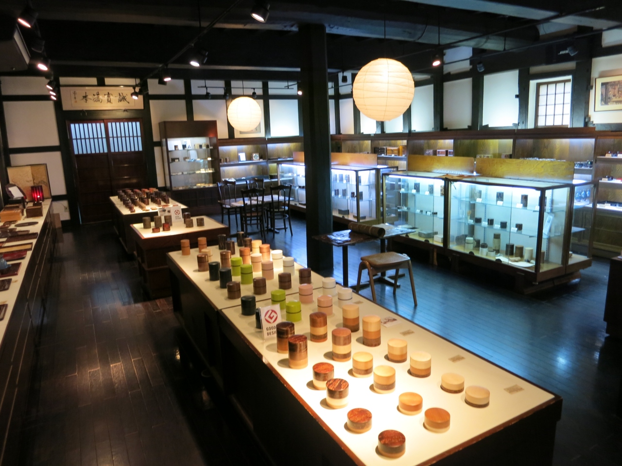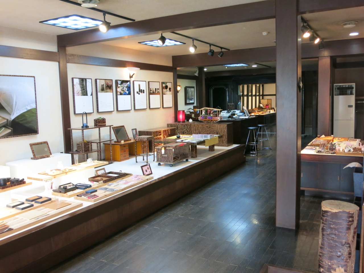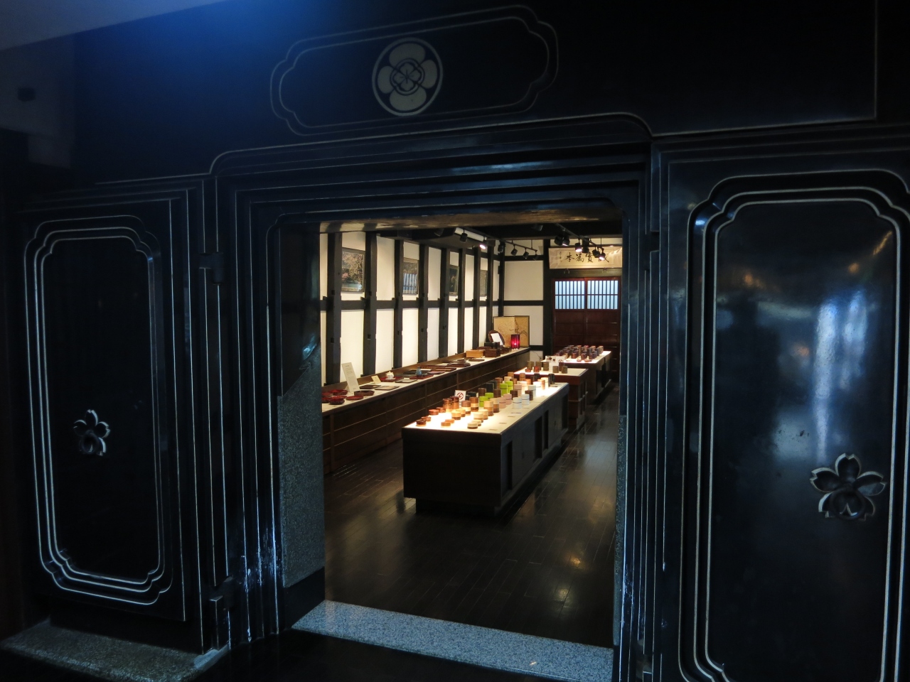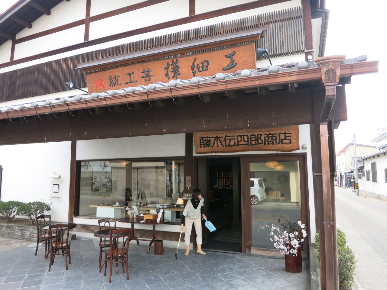 角館 下新町にある藤木家(藤木伝四郎商店)は嘉永四年創業の樺細工の製造販売の老舗です。店内には茶筒を始め色々な樺細工商品があります。この店の奥には大規模な内蔵があり商品陳列に使われています。重厚な黒塗りの扉には桜模様がありとても見事です。店外からは見られないので、是非入店して見学させてもらってください。