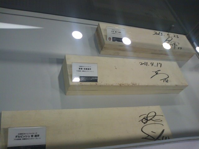 札幌ドームへは、野球やサッカー、コンサート目的などで訪問される方が多いかと思いますが、その際に、イベント開催時間帯以外で是非注目して頂きたいのが、館内に展示されている記念品です。野球関連(特に日ハム選手関連)が多いですが、EXILEやドリカム、Bonjoviなどのアーティスト関連の展示や、コンサドーレ関連、更には、2002年のサッカーW杯関連の展示など、中に入らないと見られない貴重な展示も多いので、是非、主役のイベントの空き時間を利用して、こうした展示にも目を通してみて下さい。