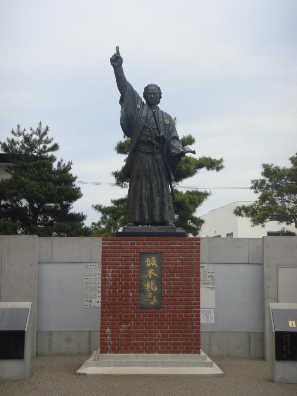 坂本竜馬本人は北海道に一度も足を踏み入れていませんが、函館市の坂本竜馬記念館前に、高さ3.5メートル、台座を含めると6メートルの竜馬像があります。天を指さす勇ましい竜馬像で、“たとえ1人でも蝦夷地を開拓する”という大きな夢があったようです。