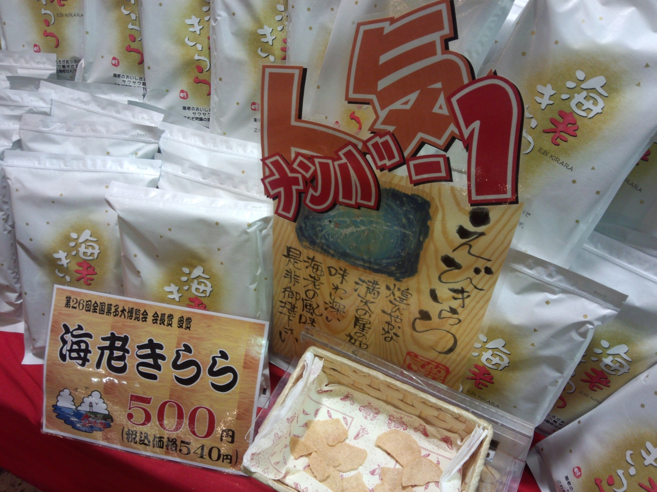 えびせんべいが試食できましたが、「海老きらら」は美味しかった。今まで食べたえびせんべいの中でも一番かも!