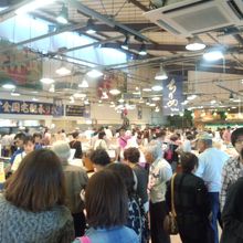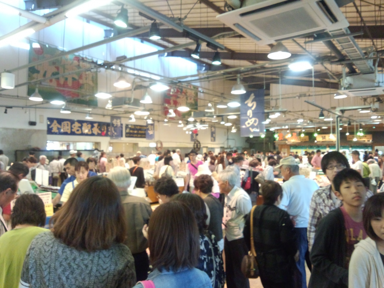 海産物を中心にたくさんの品物が並びます。訪れる客はたくさんいて、駐車場はいつもいっぱいです。