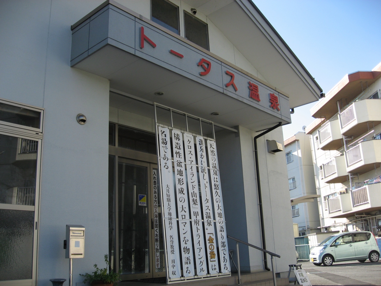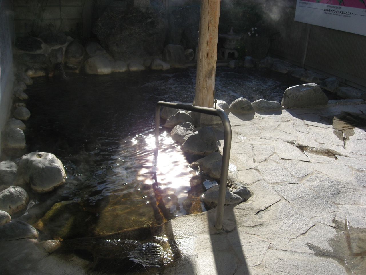 甲府市内にある立ち寄り温泉施設。薄い茶色した温泉は、光により金色に輝いて見えます。お湯は正真正銘の素晴らしい温泉。浴槽にはドバトバと持った得ないくらいにかけ流されいます。数分入っただけで汗が止まりません。山梨にこんな良い温泉があるとは、驚きです。