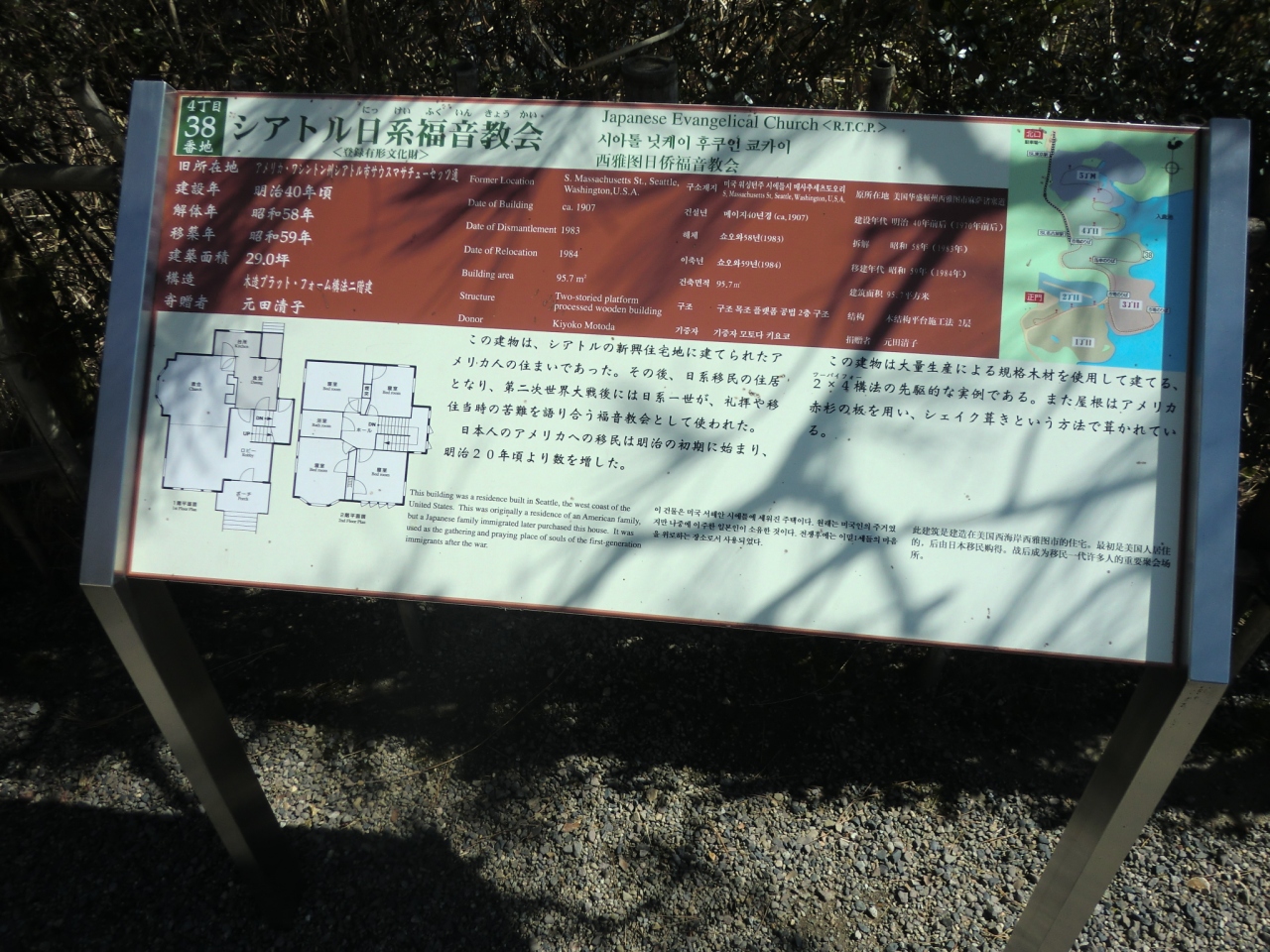 明治村の池の周辺にある建物で天気の良い日は景色も良いですが、風も強い場所だと思います。明治村内でも唯一アメリカの星条旗がある場所だと思います。
