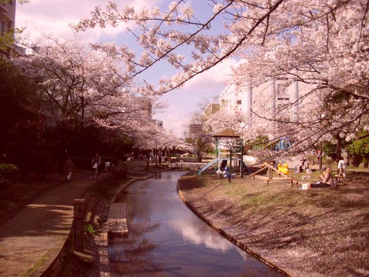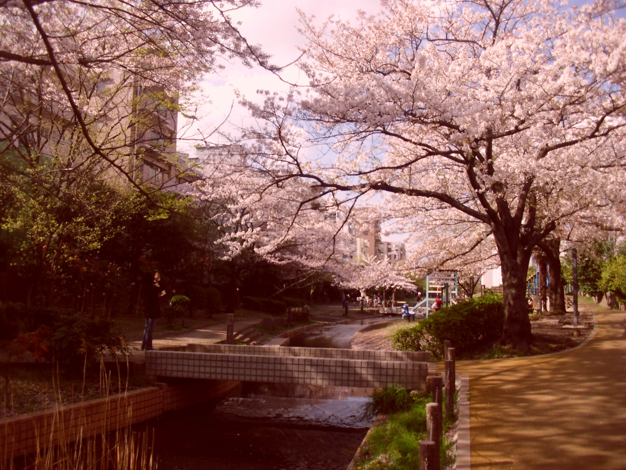 東京スカイツリーから比較的近くにある隠れた桜の名所です。小さな川沿いに桜が植えられておりそれが長い公園のようになっています。大通りよりも低い位置に公園があるので気づかずに通り過ぎて行きそうです。ここは桜の数もそこそこ多く、あまり人がたくさんいないので定番の場所よりゆっくり見ることができると思います!いくつか写真になるような場所もありました!