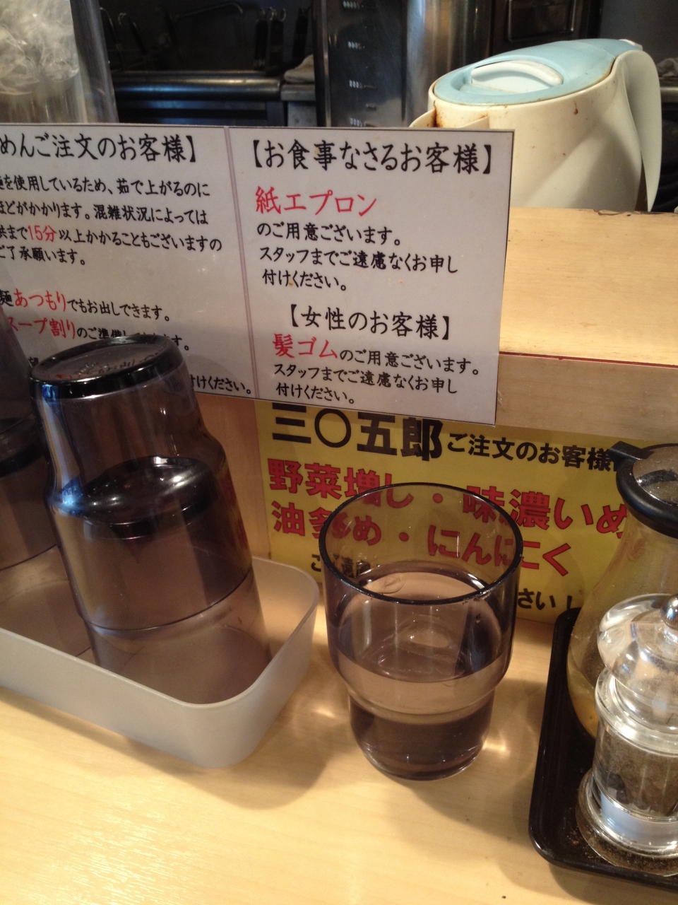 夕方開店直後に訪問。参○伍郎ラーメンをオーダー。こちらは味の濃さ、油の量、にんにくの有無、野菜の量を選ぶことができます。麺はもちもちだがいわゆる二郎系ではありません。特徴に感じたのはチャーシュー。各部位をごちゃ混ぜにして固めてスライスしたような感じで美味しかったです。場所がほぼ六本木のど真ん中にも関わらずコスパはとても良く頑張っているお店だと思います。