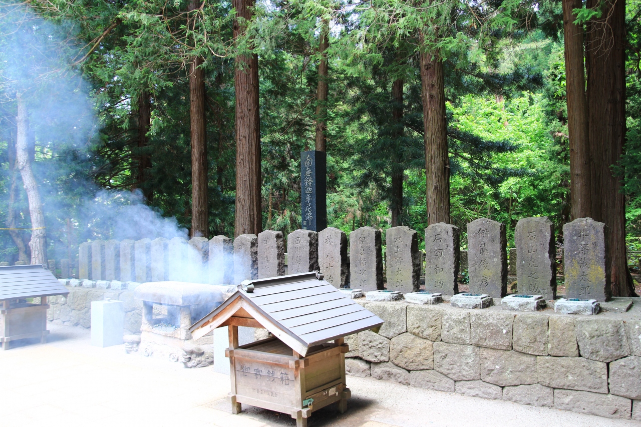 とはいえ、会津観光にきた方は必ず立ち寄ると思われる場所ですので、人は多いです。墓の前には無人ですがお線香が一把50円で売られており、墓前に線香を供えることができます。
