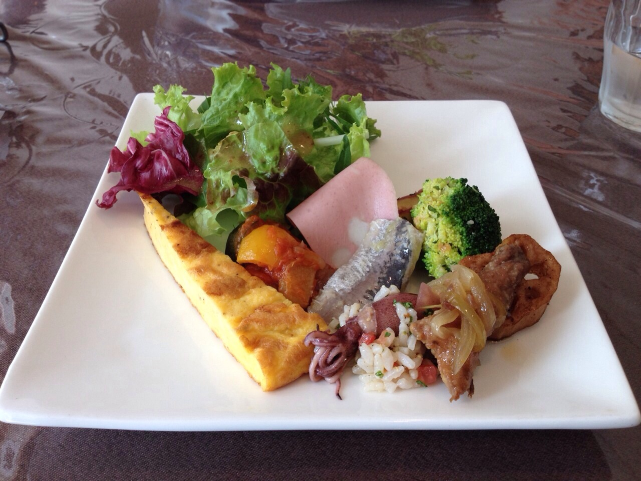 ランチは3つ。パスタランチ、A・Bセットとあり、私たちはメイン付きの少し豪華なランチ2200円にしました。前菜の盛り合わせには7,8種類ほどの前菜が載っています。色とりどりの前菜にテンションが上がります!パンは温かいフォカッチャで足りなければ追加で頂けます。