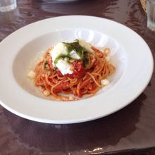 その後パスタ。パスタはオイルパスタ、トマトパスタ、本日の限定パスタから選べます。本日のパスタは5皿しかなくて食べられませんでしたが…。