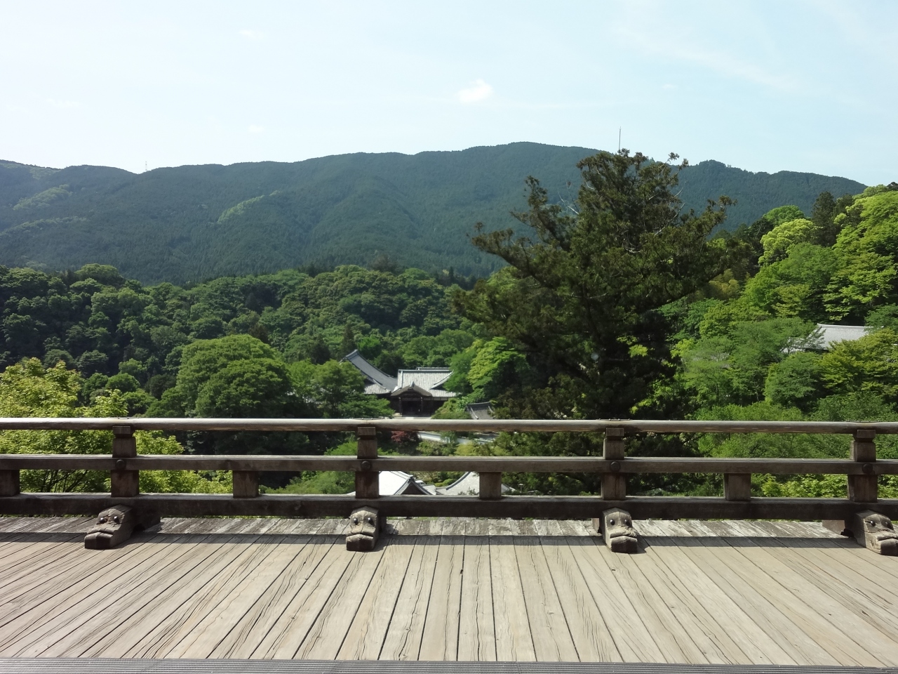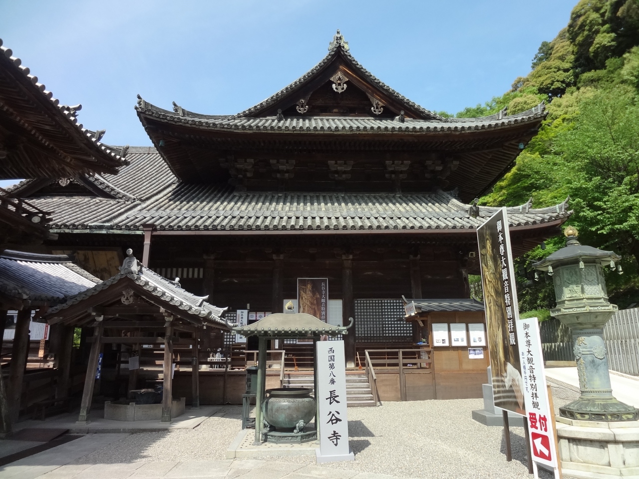 長谷寺境内は、399段の階段に屋根が付いた登廊は想像よりもキツいことはなく、乾いた風が抜けることもあってとても快適でした。また、清水の舞台のような「長谷の舞台」から見えた、向かいの山全体が新緑に染まる風景は素晴らしいものでした。