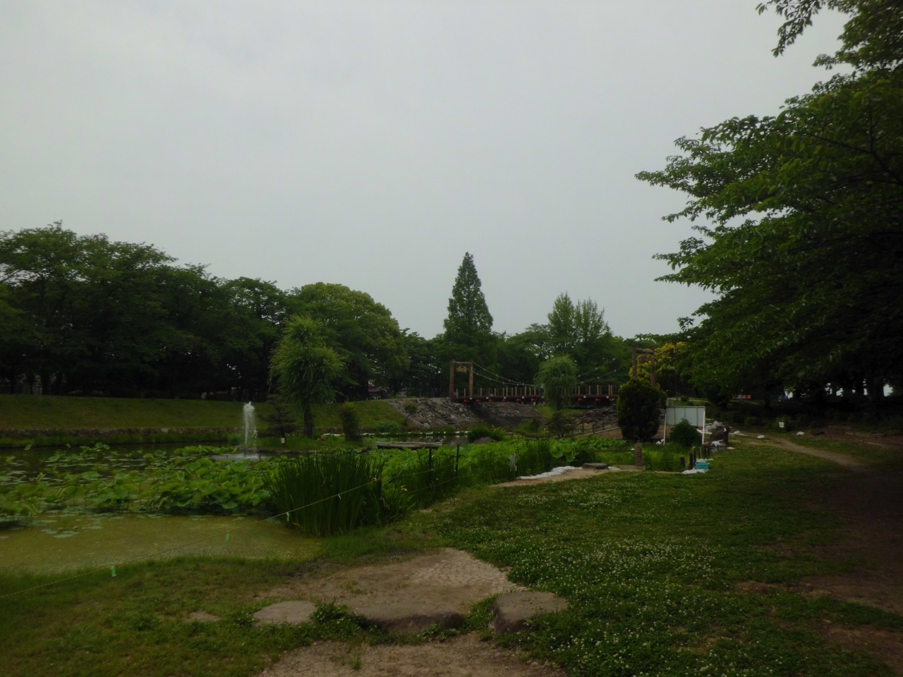 住宅街で、八田川沿いの緑道に続いています。駐車場はありますが、入口は狭く、数台しか停められません。大きな柳と蛙をイメージした遊具がシンボルになっていて、ローラーすべり台などがつながっています。奥には蓮の池もあり、シーズンが楽しみです。