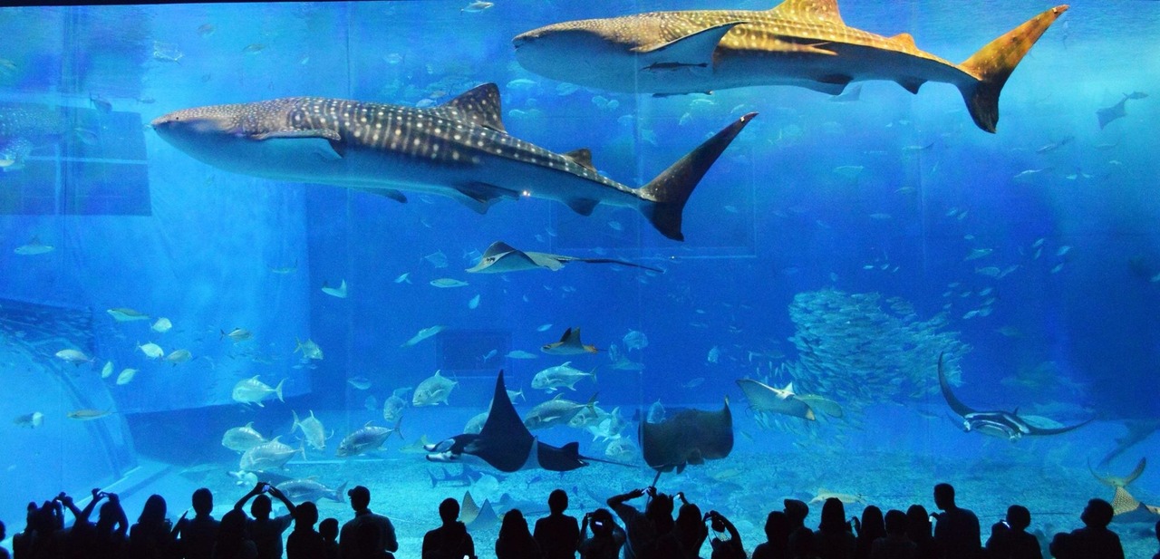 巨大水槽のスケールの大きさもそうですが、ジンベイザメが3匹同時に泳いでるなんて信じられません!